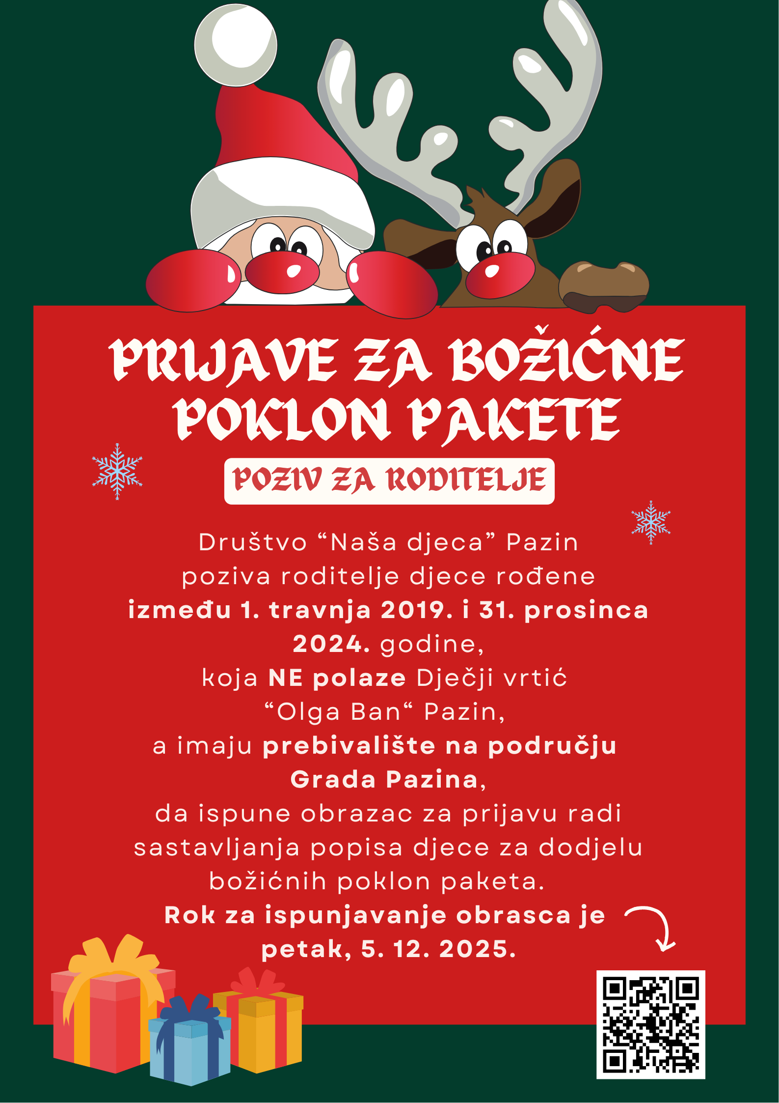 ovim putem otvaramo prijave za podjelu božićnih paketa! Detalji se nalaze u nastavku, a roditelji svoju djecu mogu prijaviti putem obrasca: https://forms.gle/tKkHVYPUtJrPWo8b6.