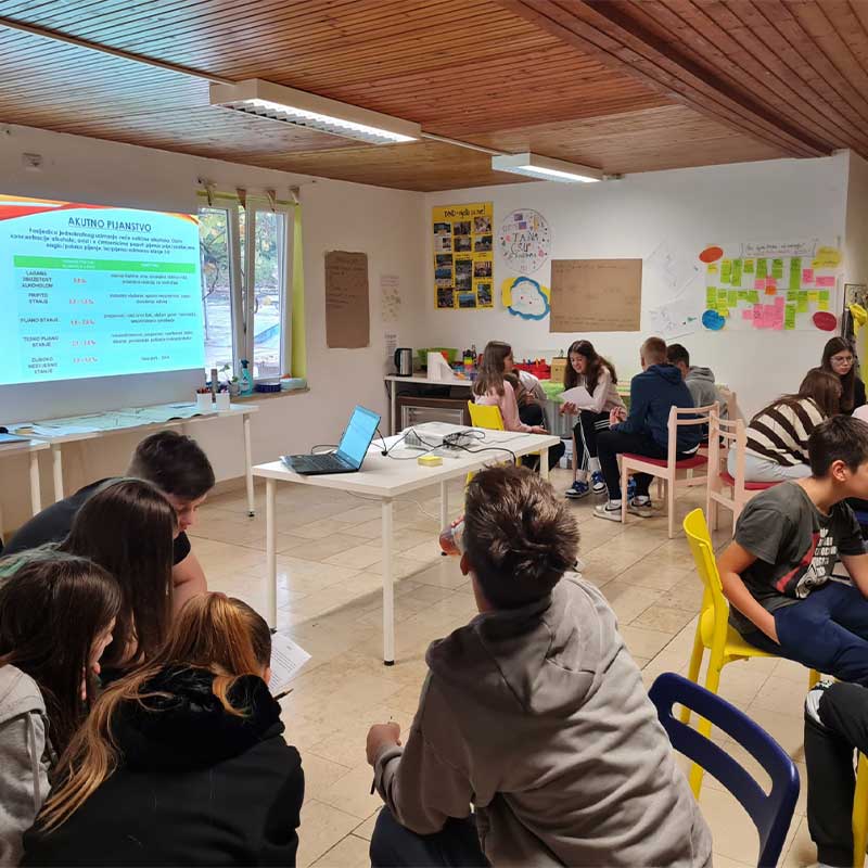 Radionice namijenjene edukaciji o štetnim posljedicama ovisnosti o drogama i alkoholu te promicanje zdravih načina života.